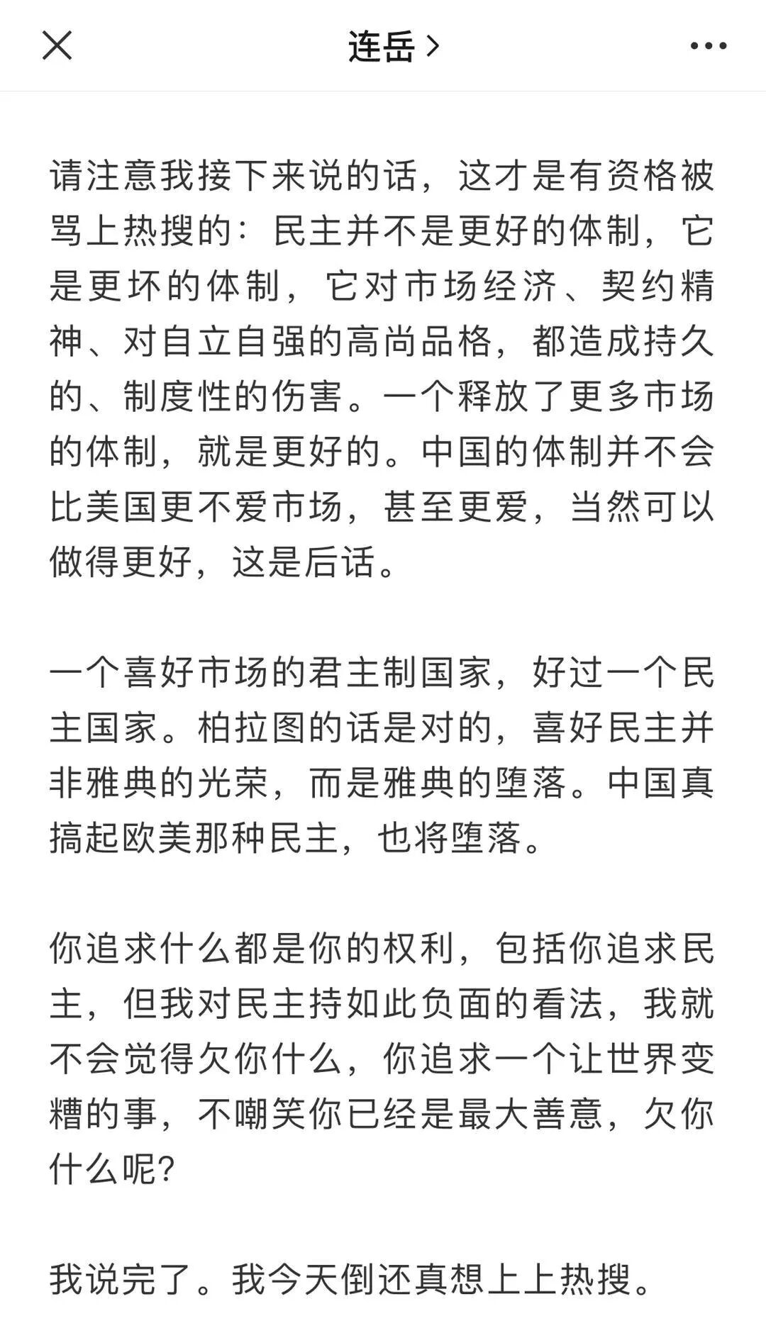 民主、自由的“普世价值”都不要了,这不是“堕落”,这叫“畜生”。连岳,你赶紧自裁吧。