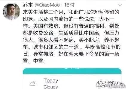 (图源@乔木DC微博,明德先生《北外乔木,一个诚实的公知:到美国才发现,被自己忽悠瘸了!》)