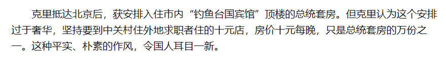 在听完这个故事后,我上网查了一下,这些片段,出自一篇《美国国务卿在北京的食宿》的文章。