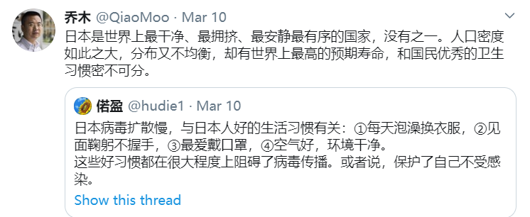 美国是卫生防疫系统公开透明,日本是世界上最干净、最安静有序的国家。