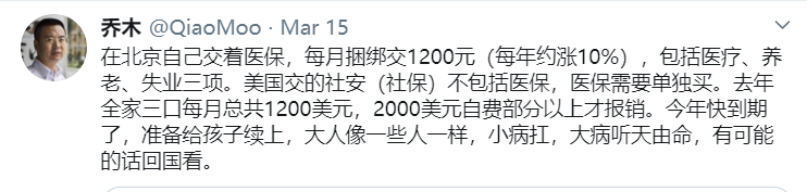 接下来的乔木的话,则更让公知们坐立难安——乔木居然还在北京交着医保。